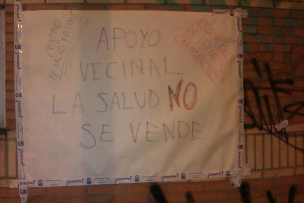Ante la ola de privatizaciones a las que se está viendo sometida la sanidad, en Carabanchel,los trabajadores del Centro de Salud de Nuestra Señora de Fátima, han dicho¡basta!. Esta noche, tras las movilizaciones de la tarde, han comenzado un encierro que puede durar días.Han sido los pioneros en el barrio,pero vendrán más, no cabe duda.Mañana en el centro de salud de General Ricardos, habrá una asamblea a las 12 para decidir si se encierran también en dicho centro y secundan la iniciativa del centro de salud de Carabanchel Bajo.